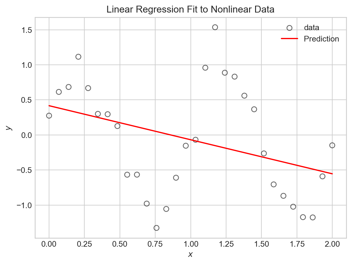 Let’s try basis function expansion on our synthetic data. For this, we’ll first bring in the linear regression model that we developed previously: