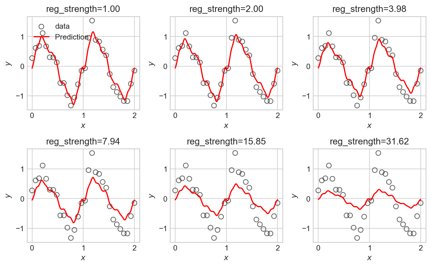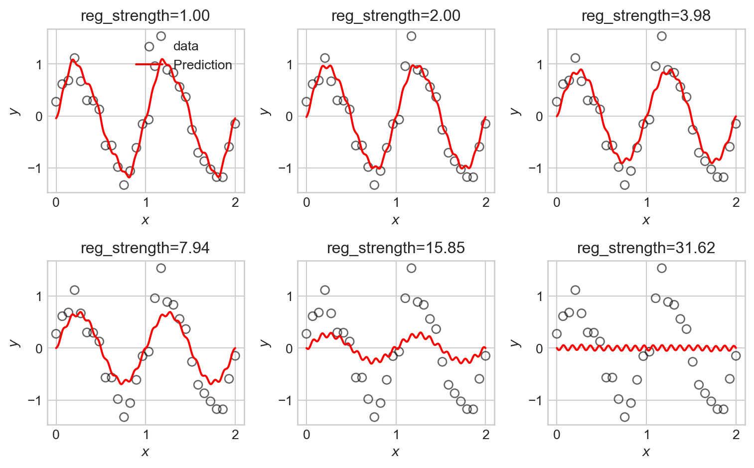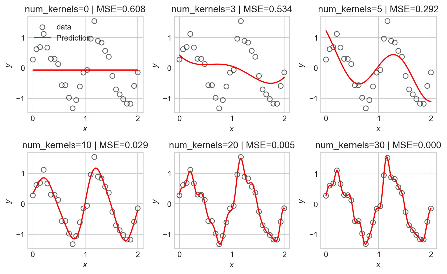 So, to learn a model with basis function expansion, all we need to do is construct the feature matrix \(\mathbf{\Phi}\) by applying the basis functions to each data point, and then run linear regression as before.