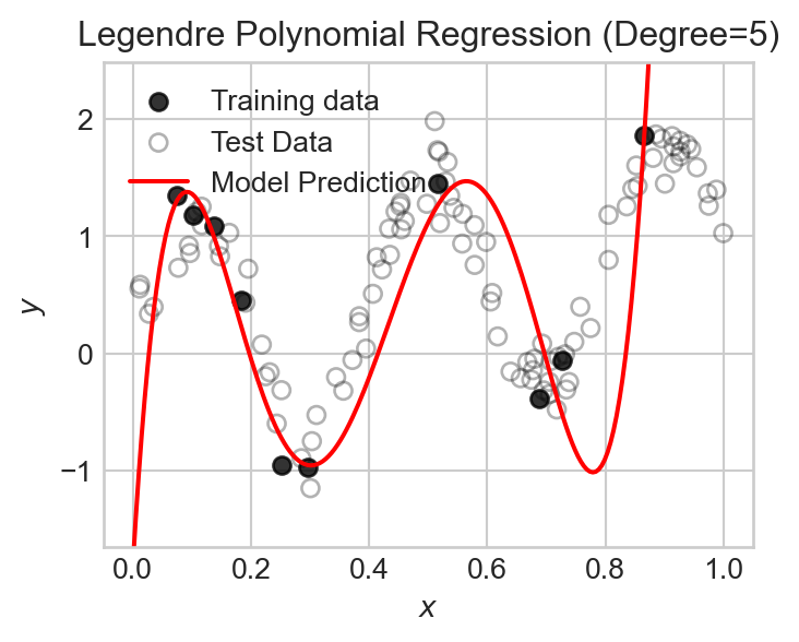 For our feature map in this experiment, we are going to make use of a special set of polynomial features called Legendre polynomials. The first few feature maps are: