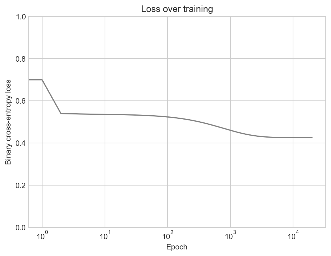axarr[0].set(title='Loss over training', xlabel='Epoch', ylabel='Binary cross-entropy loss')