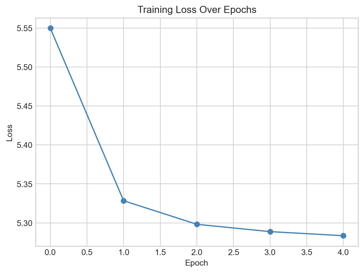 for epoch inrange(5): total_loss =0for X_batch, y_batch in dataloader: X_batch, y_batch = X_batch.to(device), y_batch.to(device) opt.zero_grad() output = model(X_batch) loss = loss_fn(output, y_batch) loss.backward() opt.step() total_loss += loss.item() loss_history.append(total_loss /len(dataloader))