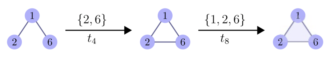 \[ \begin{aligned} &\mathbb{P}(\text{edge on node tuple } R \text{ at time } t) \\ &= \\ &f(\text{edges on node tuples } S \text{ by time } t\\ &\;\;\text{ such that } S\cap R \neq \emptyset) \end{aligned} \]