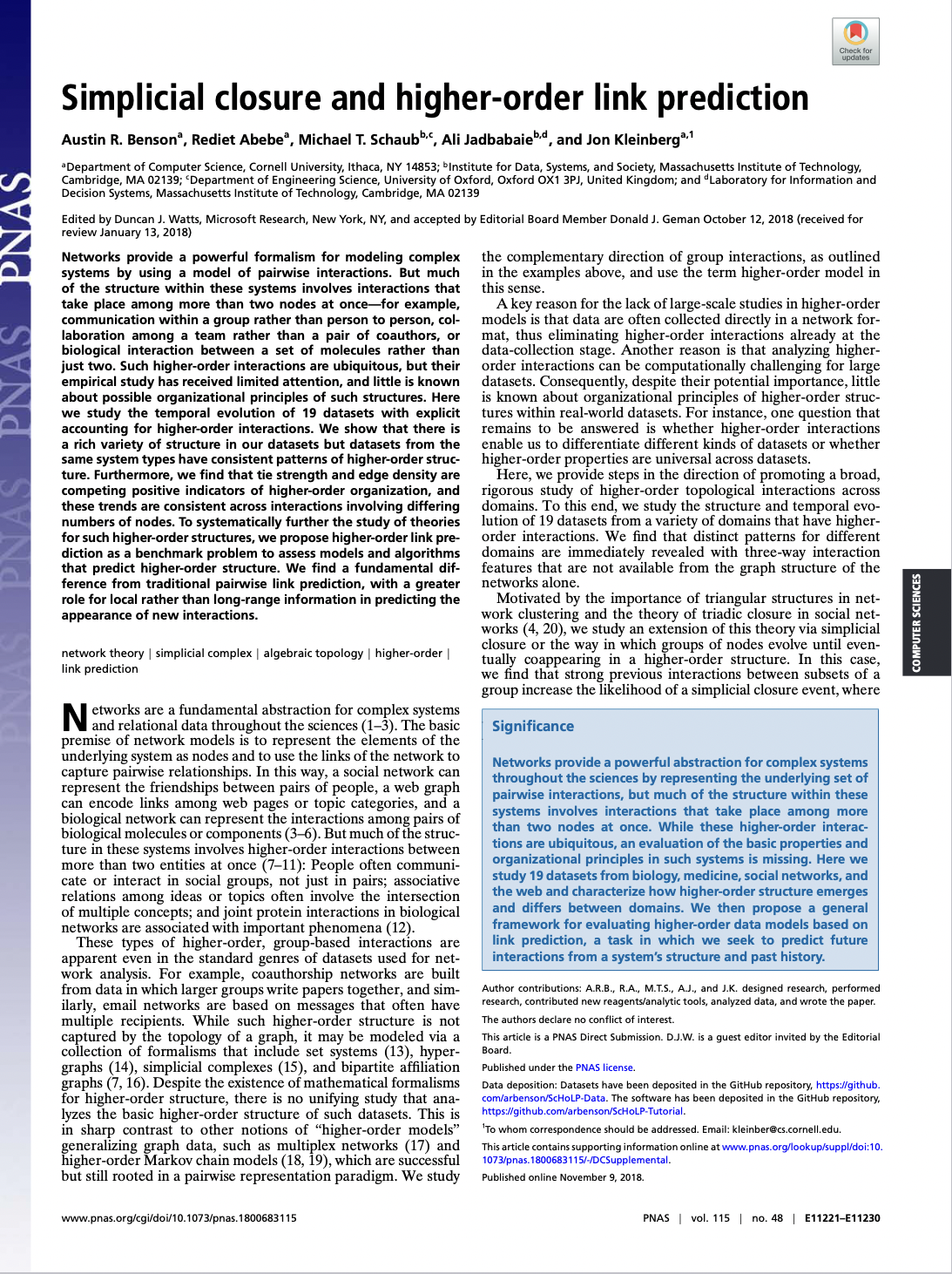 Juul, Benson, and Kleinberg (2022), Hypergraph patterns and collaboration structure. arXiv:2210.02163