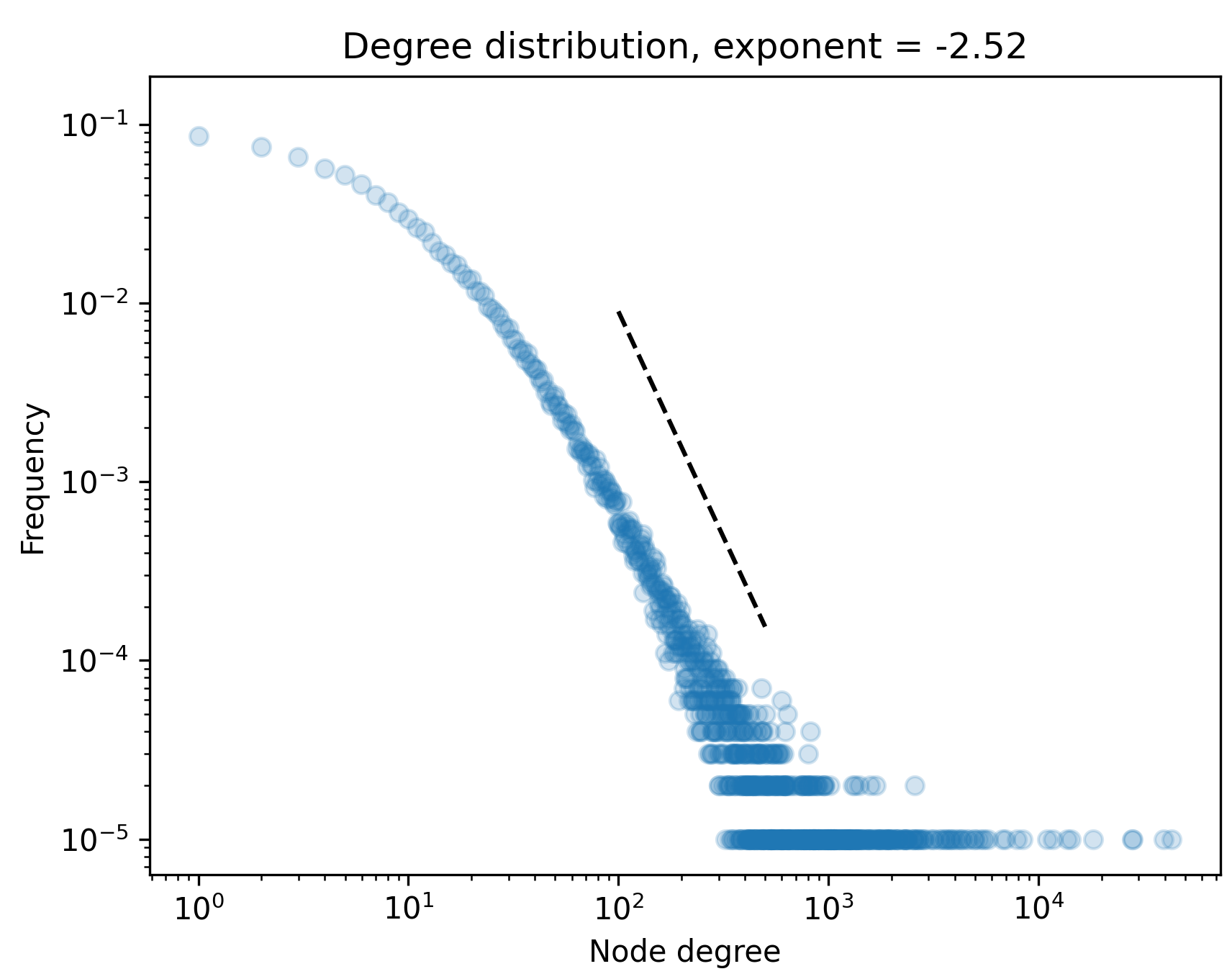 Proposition (He, Chodrow, Mucha ’24): As \(t\) grows large, the degrees of \(H_t\) converge in distribution to a power law with exponent