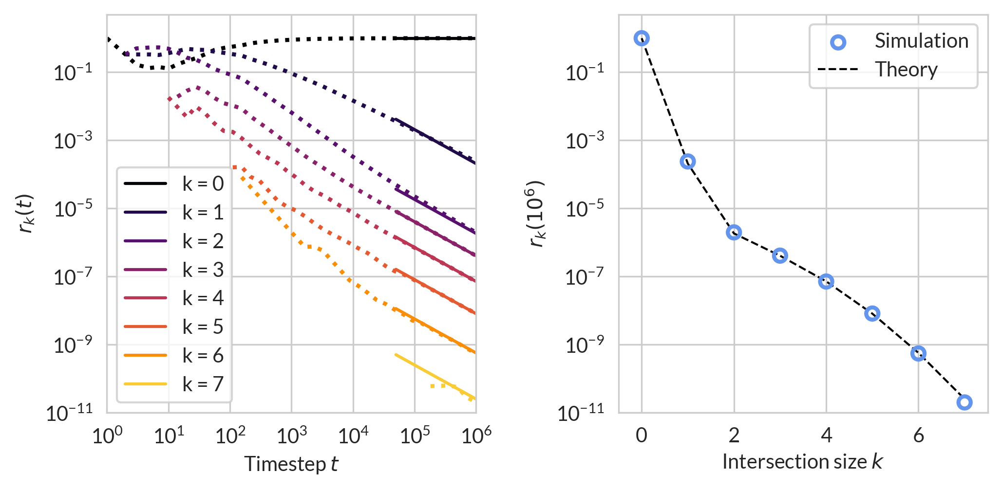 This is interesting because an growing Erdős–Rényi hypergraph would have \(k\)-intersections which decay at rate \(t^{-k}\).