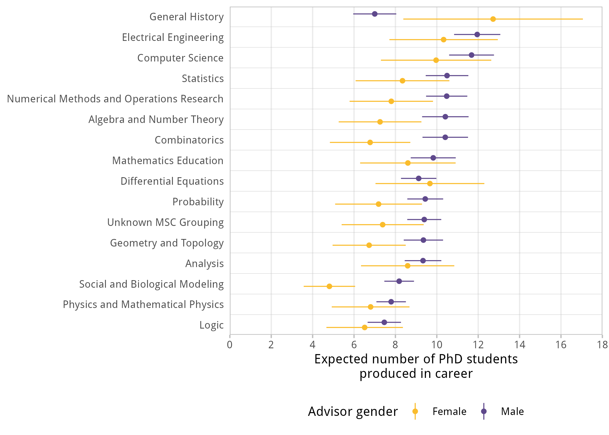 Yes! Subfields/advisor groups with greater representation of women tend to attract more women. |